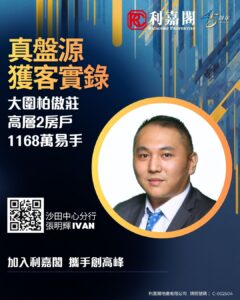 郭氏表示,新買家早前透過利嘉閣真盤源平台覓得上述心儀單位,並聯絡代理睇樓。客人鍾情單位樓齡簇新,間隔合用,加上屋苑附近起居便利,決定洽購。業主原以1,200萬元放售單位,議價後以1,168萬元易手,折合實用面積呎價約21,236元。