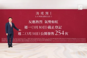 「海瑅灣I」將於下周二(31日)公開發售254伙,包括8伙一房(開放式廚房)單位、216伙兩房(開放式廚房)單位以及30伙兩房(開放式廚房)連書房單位,扣除15%最高折扣優惠後,折實價介乎577.66萬至886.29萬元,呎價14,846至16,486元。首輪銷售將於下周一(30日)下午6時截票,並設有大手客組別(A1及A2組)及購買1至2伙的B組買家。當中A1組別須認購5至8伙指定單位;而A2組別須認購2至4伙指定單位。