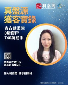 利嘉閣地產葵青區青衣站分行聯席董事梁均耀(Wilson)表示,該行高級客戶董事黃燕芳(Angel)最新促成青衣藍澄灣1座高層D室的二手成交個案,單位實用面積約690方呎,屬3房1套房間隔,望山景。
