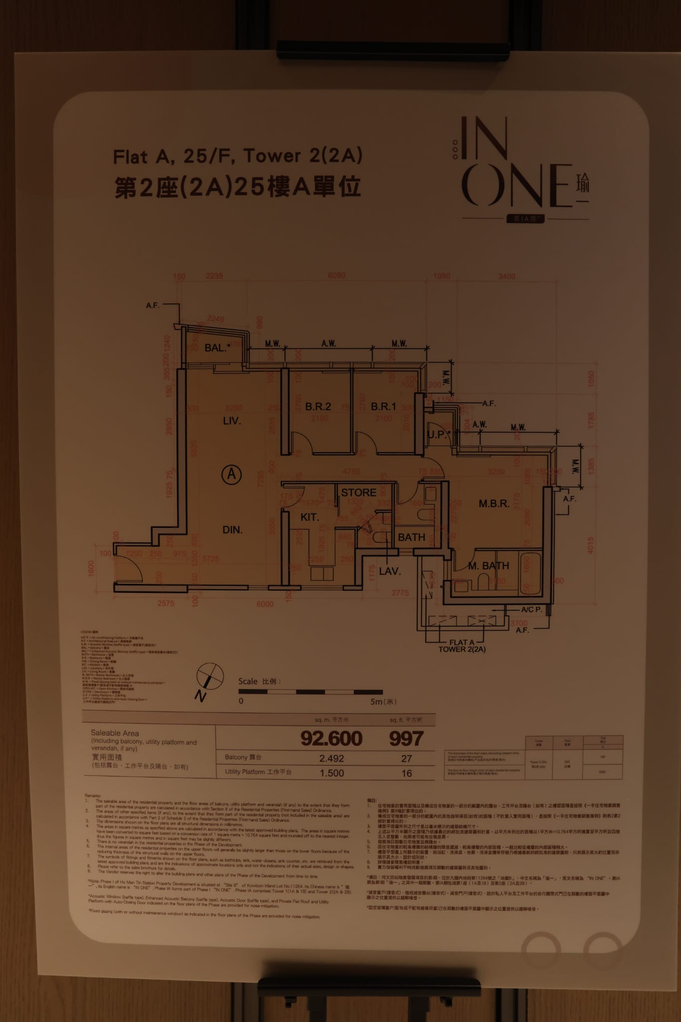 第2座(2A)25樓A室,實用面積997方呎,三房一套連儲物室間隔。客飯廳為整個單位的靈魂所在,長形開則,間隔寬敞實用,長約7.2米、闊約 3.25米。單位層與層之間的高度約3.225米,連接約 27方呎露台,配以落地玻璃趟門,醉人維港景觀及東九龍優美海岸映入眼簾,自然光溢滿整個空 間,增強通風和採光;大宅玄關區域設有兼具鞋櫃、衣櫃及玄關置物枱的木色特高壁櫃,結合方便 穿脫鞋履的同色系梳化,感覺典雅溫馨。玄關充裕的收納空間,並就不同功能分區,滿足住戶日常出門的方便性,或者親友到訪,用作衣物儲存空間,設計貼心實用。