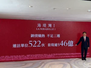 截至目前為止,海景戶已累沽117伙,平均成交呎價2萬元,最高成交呎價達2.3萬元。項目不足三周速沽522伙,套現逾46億元。
