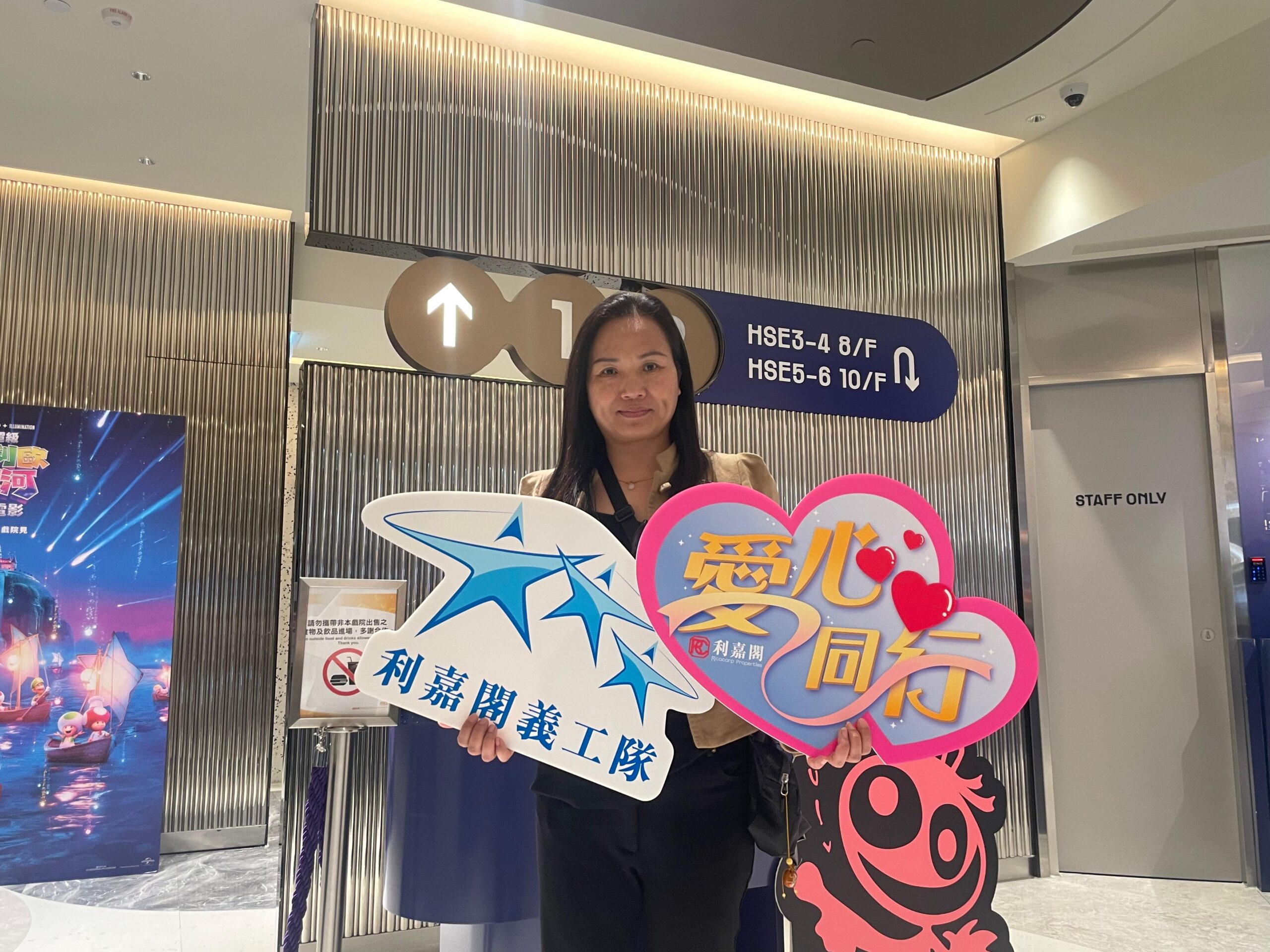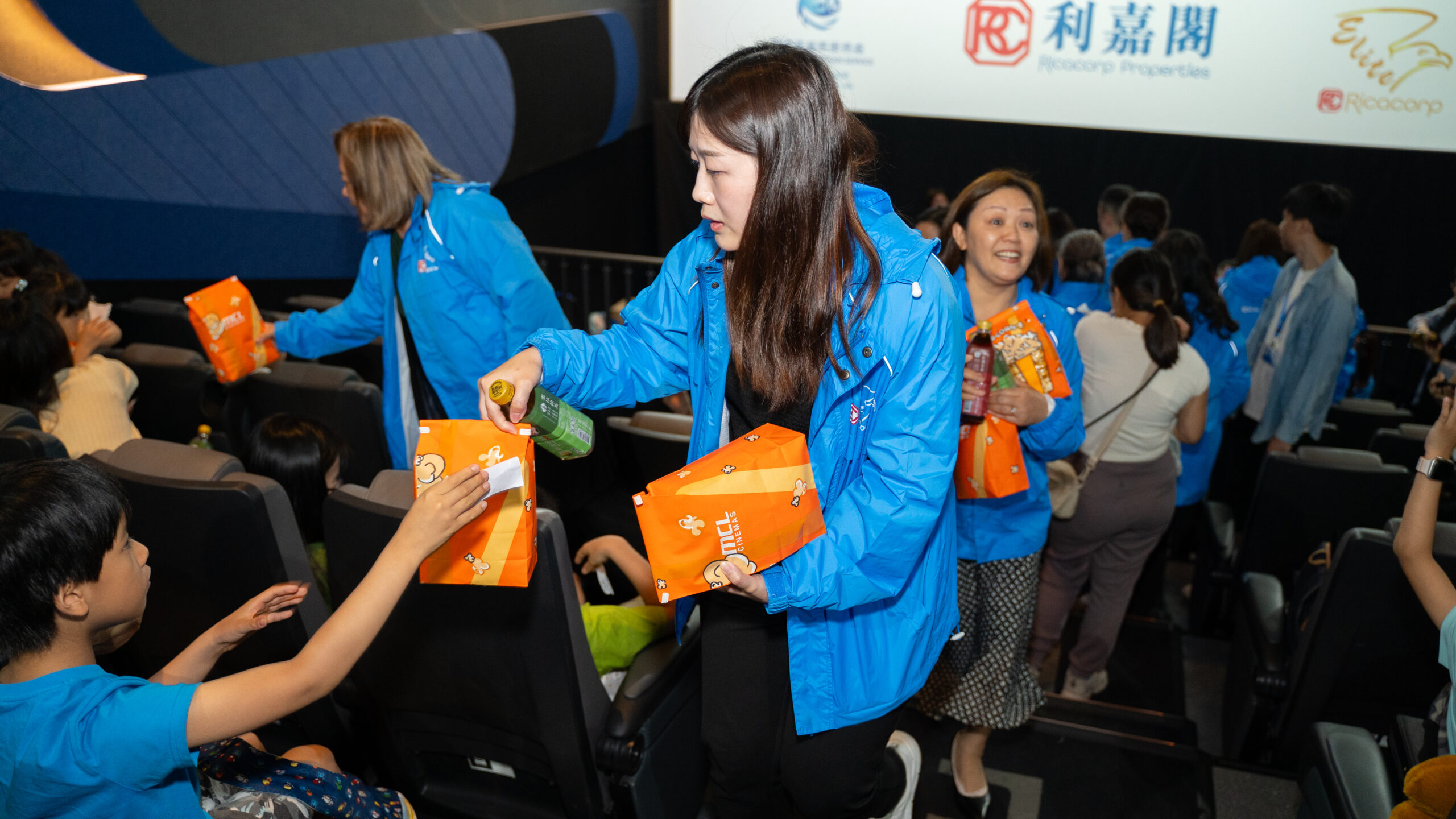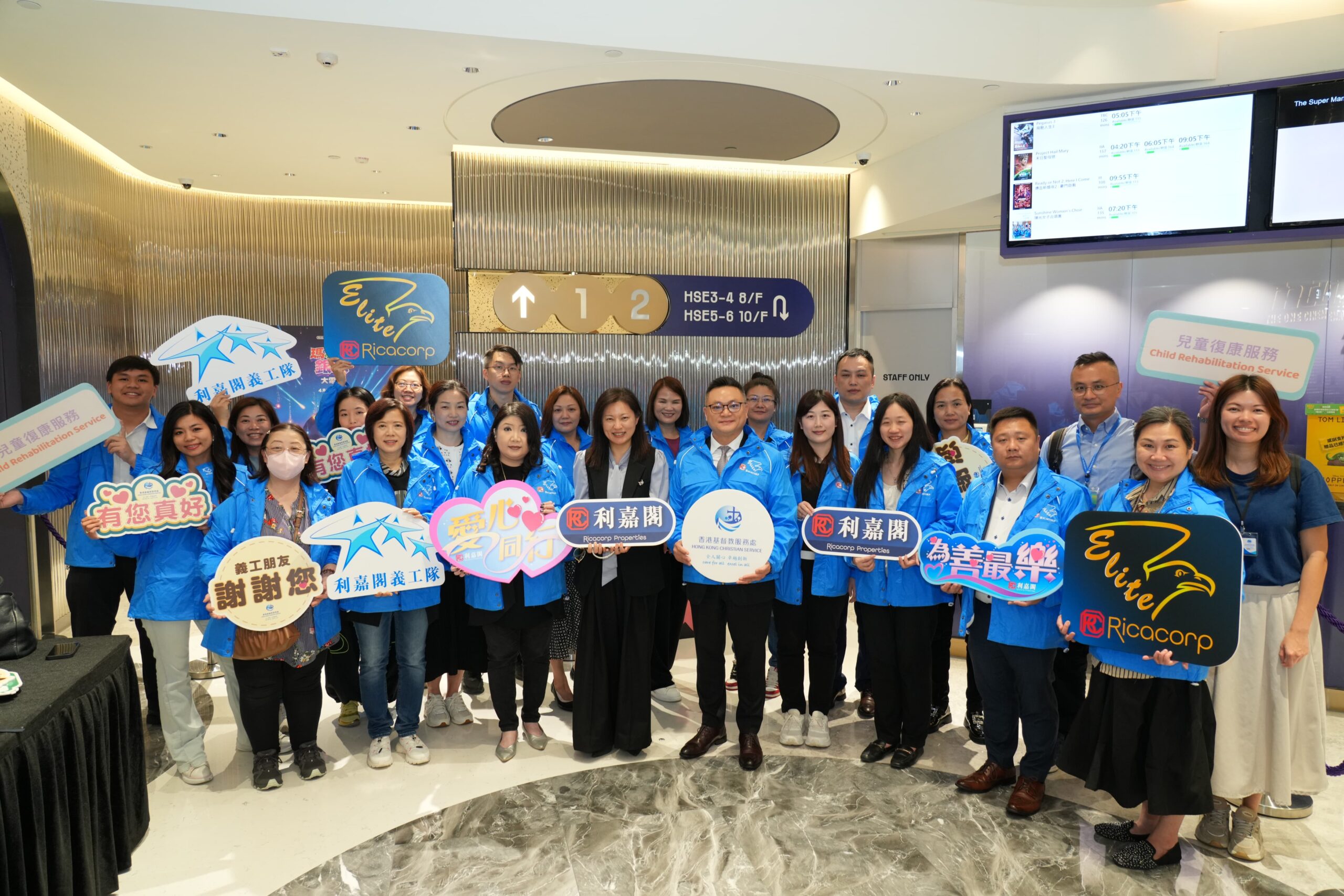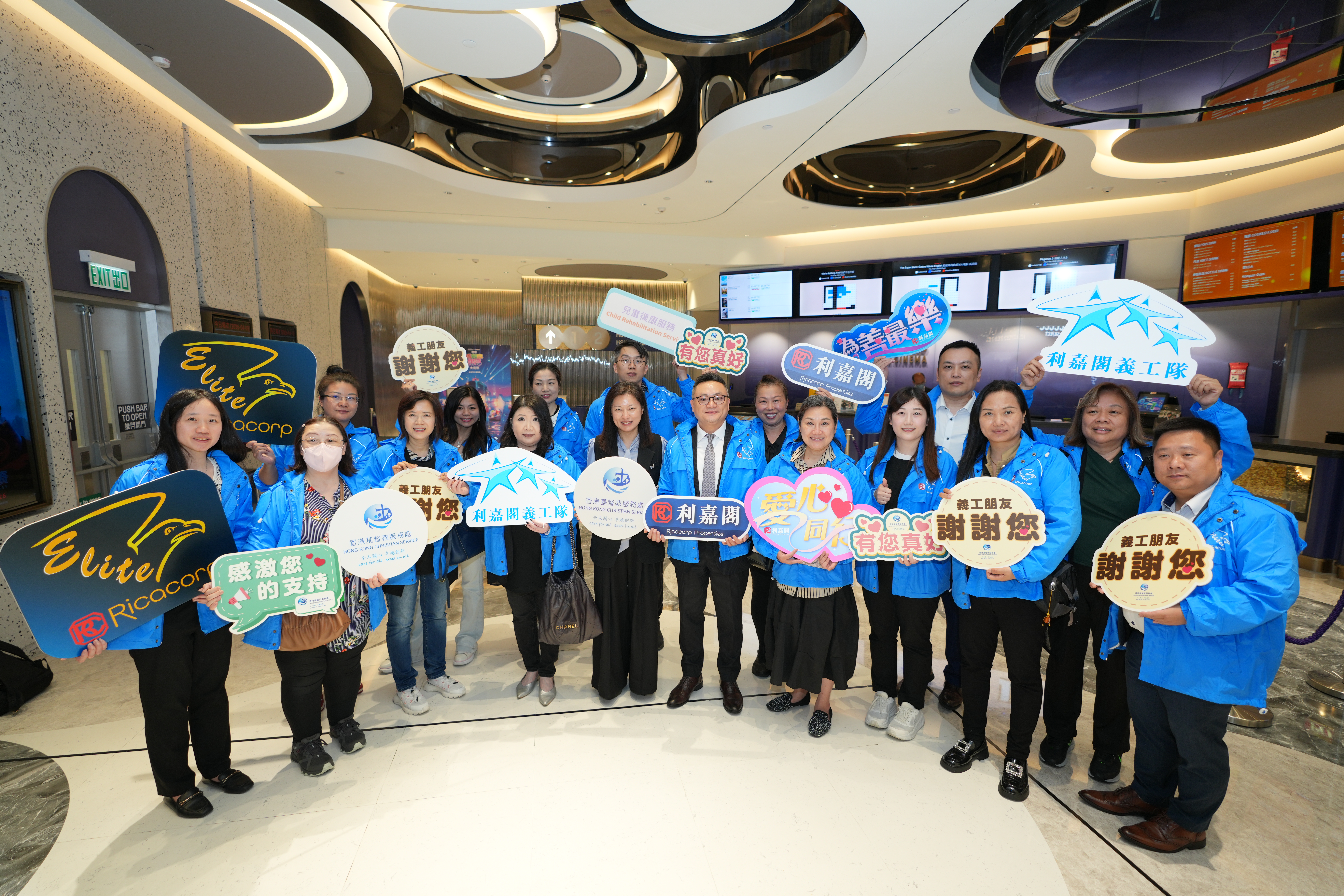 應屆利嘉閣精英會會長、東半山營業董事余傑文(Man)(前排左7)率領逾20位精英會會員及後勤同事一同出席活動並擔任義工。余氏表示,今次是精英會及義工隊首次與香港基督教服務處合作舉辦活動。除了欣賞動畫電影外,義工們亦與小朋友一同玩遊戲,並準備了禮物及爆谷套餐送予他們。看到小朋友及家長們的笑臉,令義工們感受到滿滿的力量,這份喜悅正是推動公司持續參與公益的動力。