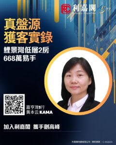 利嘉閣地產嘉亨灣及杏花區助理營業董事劉信文(Raymond)稱,嘉亨灣1行高級客戶經理黃本云(Kama)新近促成西灣河鯉景灣2座低層F室的二手成交個案,單位實用面積約485方呎,採2房間隔,望內園。