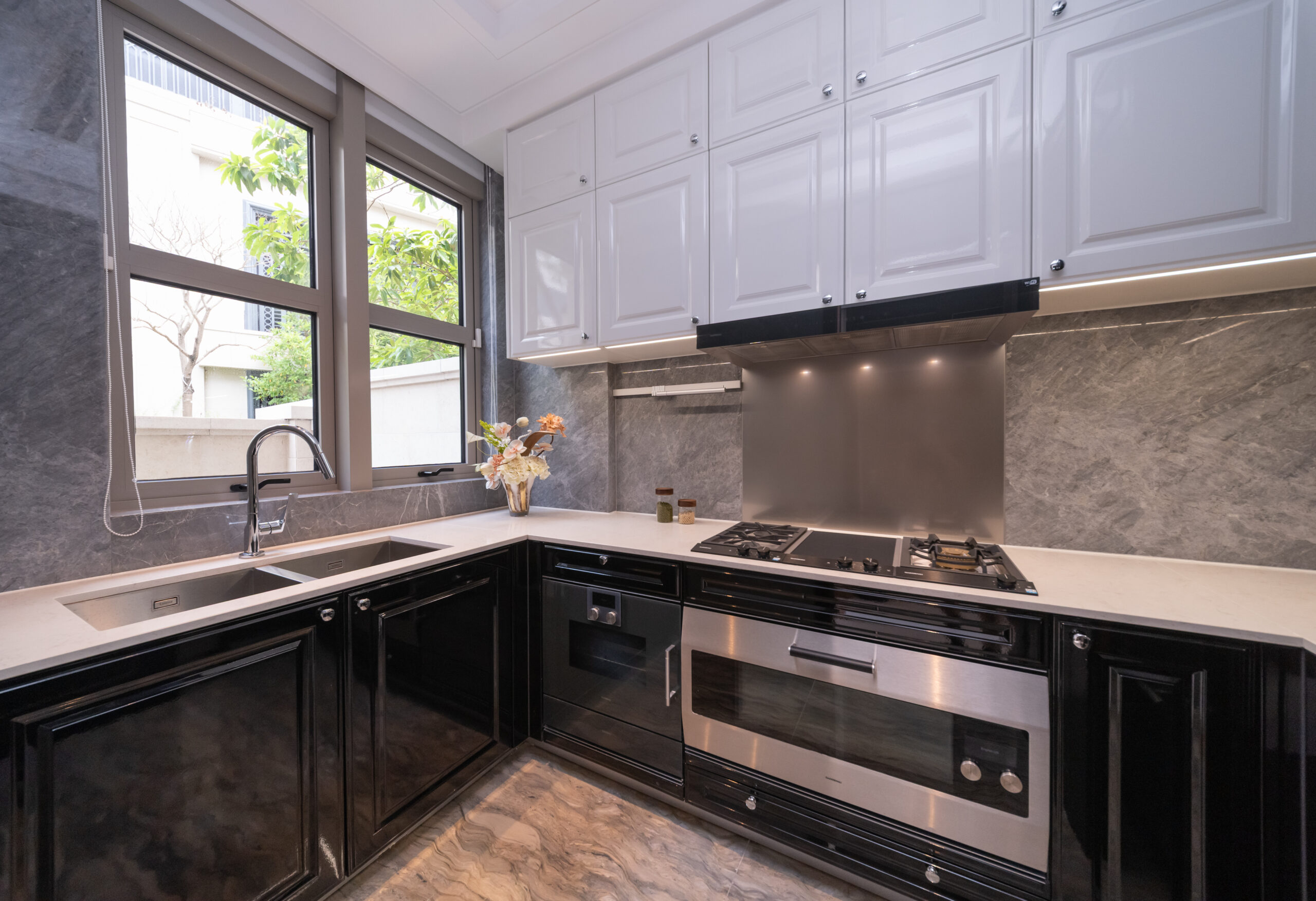 大廳層採高樓底設計,層與層之間高度達4.2米,氣勢恢宏;客飯廳空間分明,最長約5.7米,深逾7米,以落地玻璃趟門連接特大花園,前後花園面積達425方呎,延伸室內外空間。洋房更設有私人升降機直達各層,彰顯超級豪宅格局。全屋配備頂級家電設備,廚房選用德國百年櫥櫃品牌Poggenpohl,工藝與美學兼備,成就品味生活。