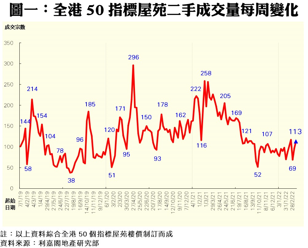 50指標屋苑上周買賣180宗 近45周次高 研究報告 2022-04-05 by Cheung Cyrus · Published 2022-04-05 · Last modified 2022-04-04