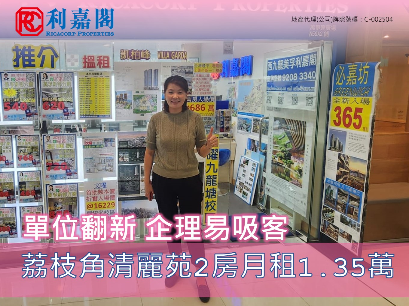 荔枝角清麗苑2房月租13500元 業主2004年買入 租金回報可觀