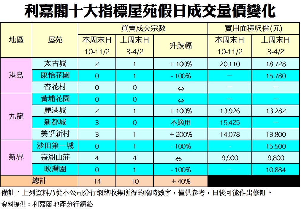 《利嘉閣十大指標屋苑假日二手實況》 股市波動增業主放盤決心及議價空間 十大屋苑周末錄14宗買賣 按周上升40% 研究報告 2018-02-12 by Chan Derek · Published 2018-02-12
