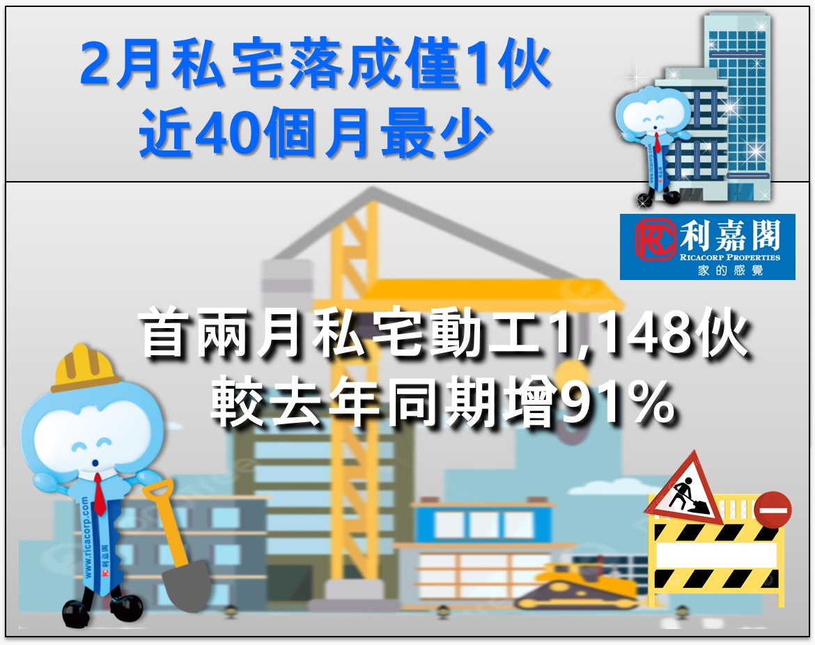 二月份1,624伙私宅落成 五個單月最少 期內212伙私宅動工 十五年同期新低 研究報告 2025-04-24 by Mak Wing · Published 2025-04-24 · Last modified 2025-04-25