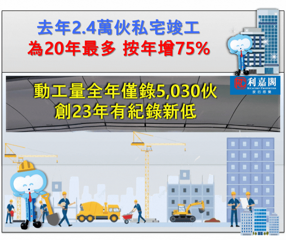 私宅三月再現「零動工」 首季僅1,148伙 Q1私宅落成4,977伙 同比跌27% 研究報告 2024-05-21 by Chan Derek · Published 2024-05-21 · Last modified 2024-05-22