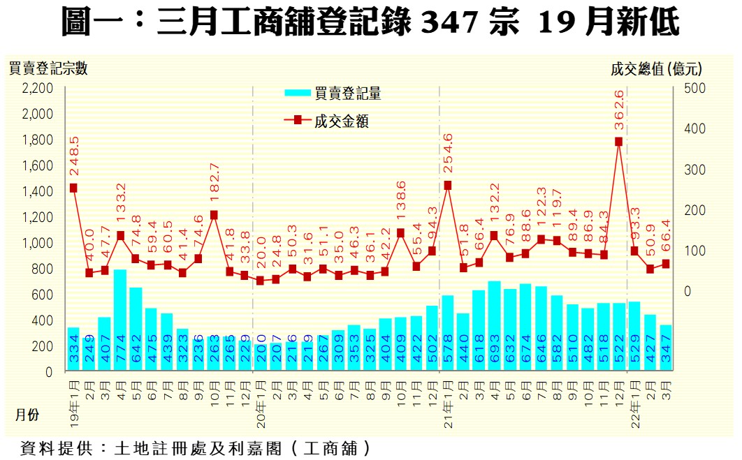 工商舖3月買賣挫至347宗 首季共錄千三宗 研究報告 2022-04-25 by Chan Derek · Published 2022-04-25 · Last modified 2022-05-26