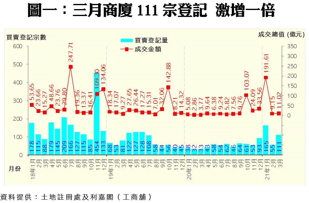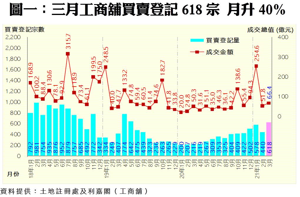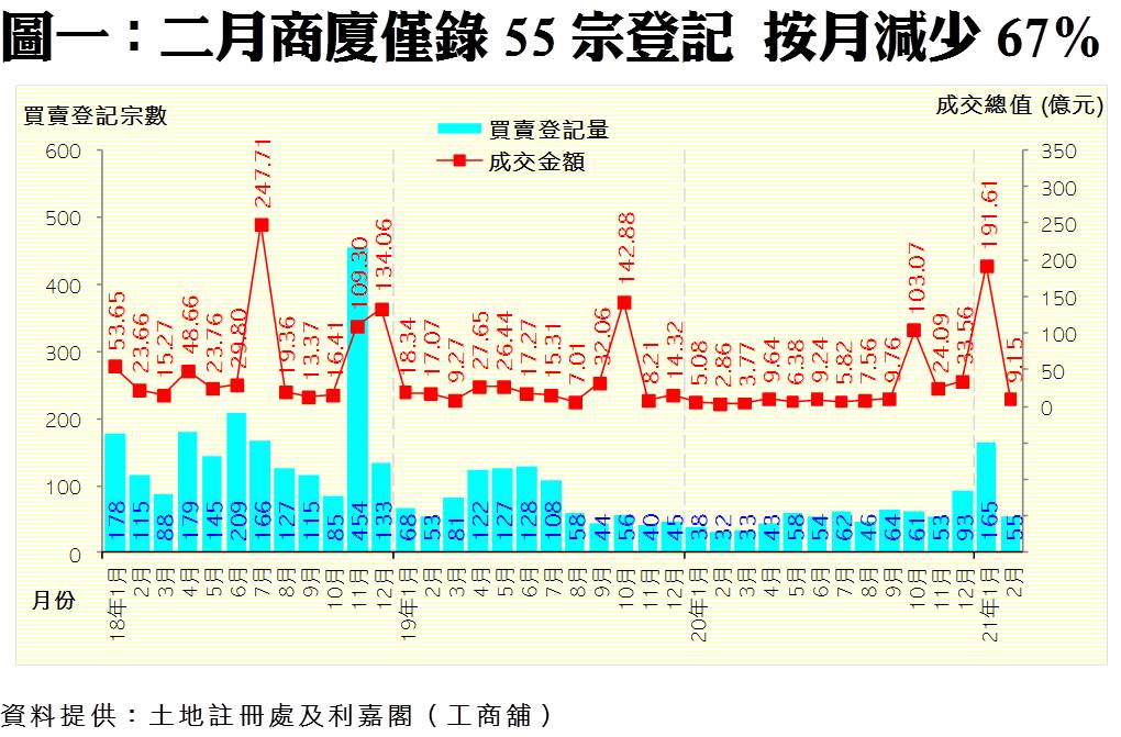 工商舖二月買賣440宗跌24% 本月料大反彈 研究報告 2021-03-24 by Chan Derek · Published 2021-03-24 · Last modified 2021-04-12