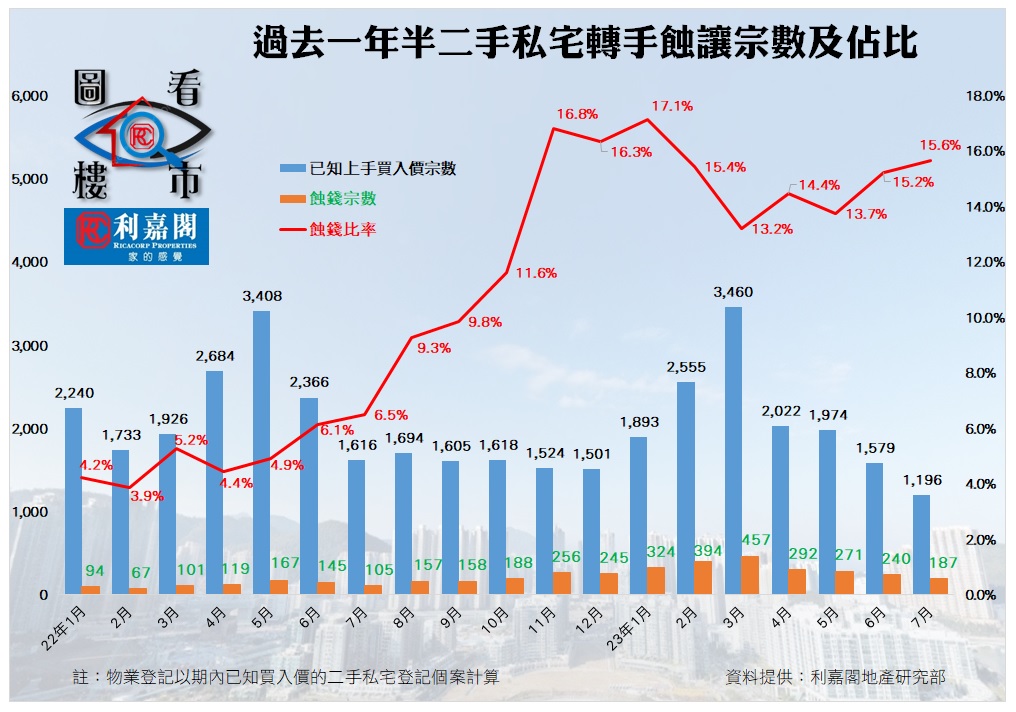 七月私宅轉手虧損比率擴至15.6% 新盤降價 二手添壓 料再墮年初困境 研究報告 2023-08-16 by Chan Derek · Published 2023-08-16 · Last modified 2023-08-21