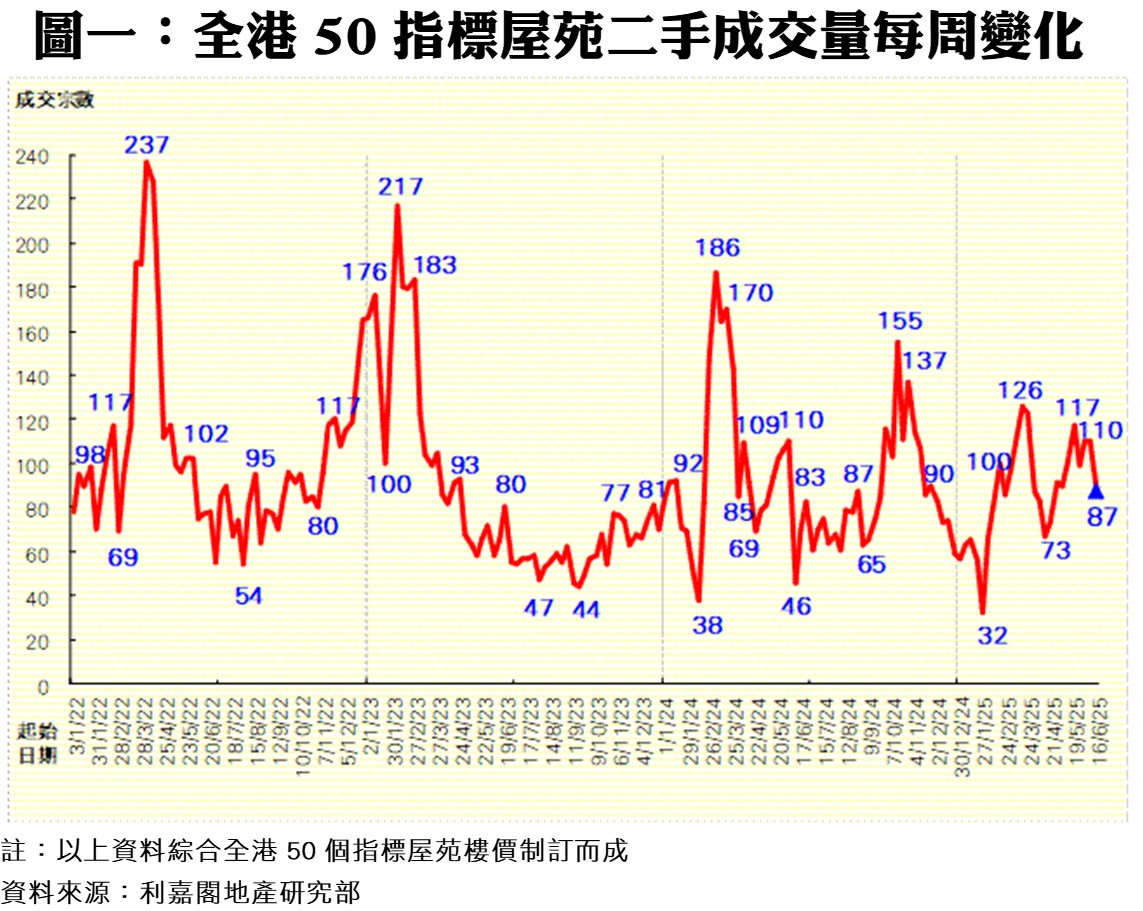 《利嘉閣十大指標屋苑假日二手實況》一手新盤列隊登場 二手交投量略為受壓 十大屋苑周末錄7宗成交 按周減少36% 研究報告 2025-06-22 by Mak Wing · Published 2025-06-22 · Last modified 2025-06-23