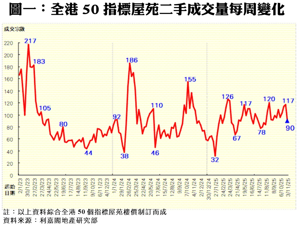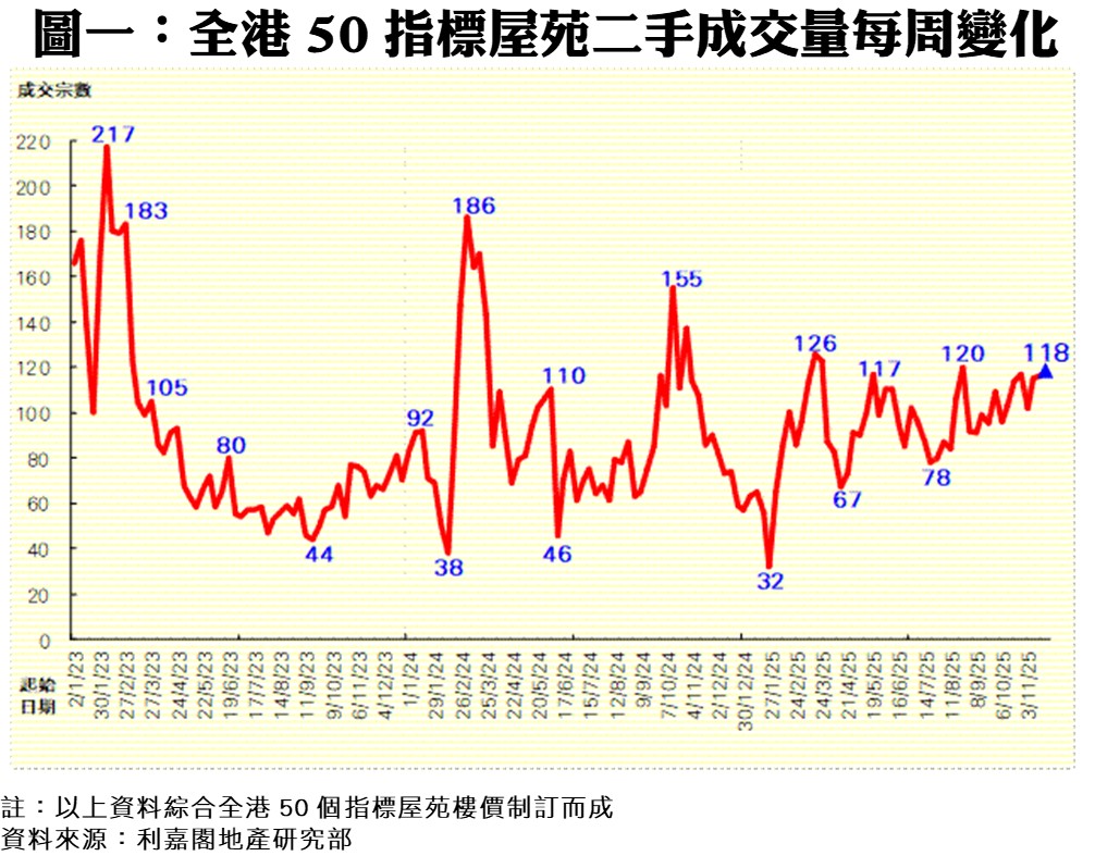 《利嘉閣十大指標屋苑假日二手實況》 十大屋苑周末錄13宗成交 按周增44% 整體交投活躍 料年底前樓價累升5% 研究報告 2025-11-17 by Chan Derek · Published 2025-11-17