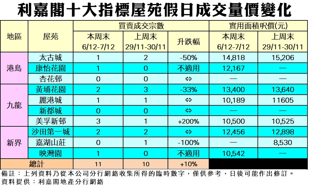 《利嘉閣十大指標屋苑假日二手實況》 十大屋苑周末錄10宗買賣 回升67% 火災短期影響心情 後市聚焦美國議息 研究報告 2025-12-01 by Chan Derek · Published 2025-12-01