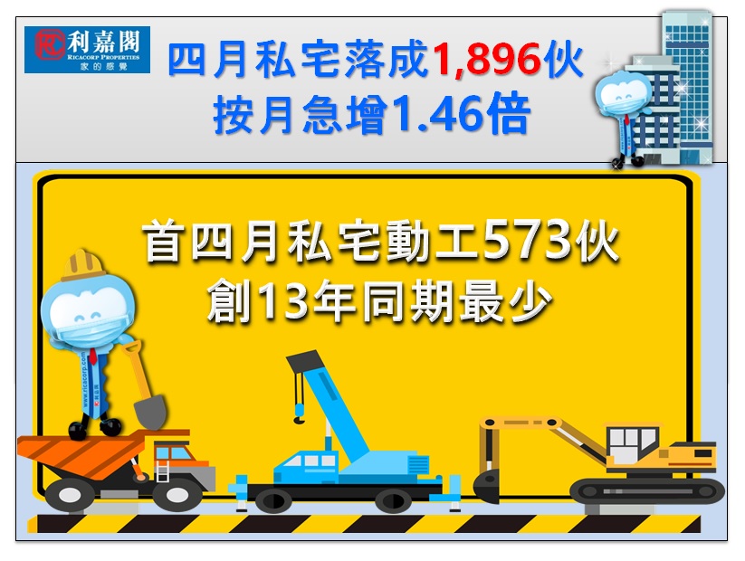 四月份動工私宅366伙 按月增86% 首四個月累計573伙 十三年同期新低 研究報告 2022-06-16 by Mak Wing · Published 2022-06-16 · Last modified 2022-06-17