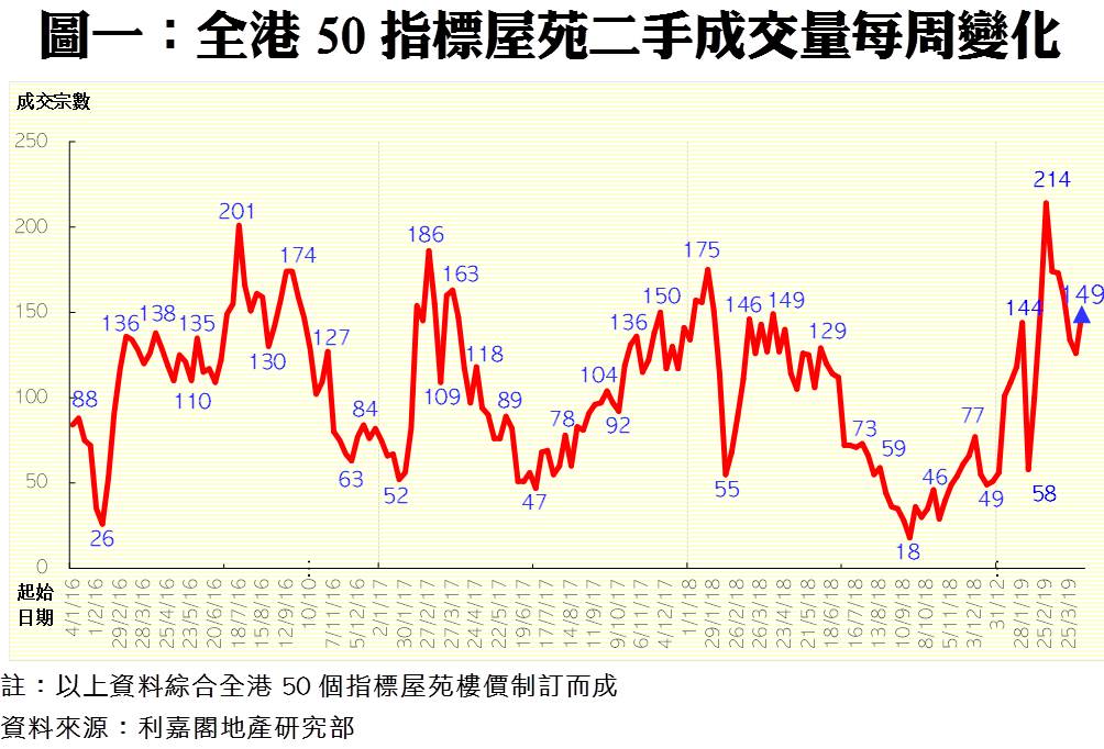 50指標屋苑上周買賣錄149宗 近三周最多 研究報告 2019-04-15 by Chan Derek · Published 2019-04-15 · Last modified 2019-04-16