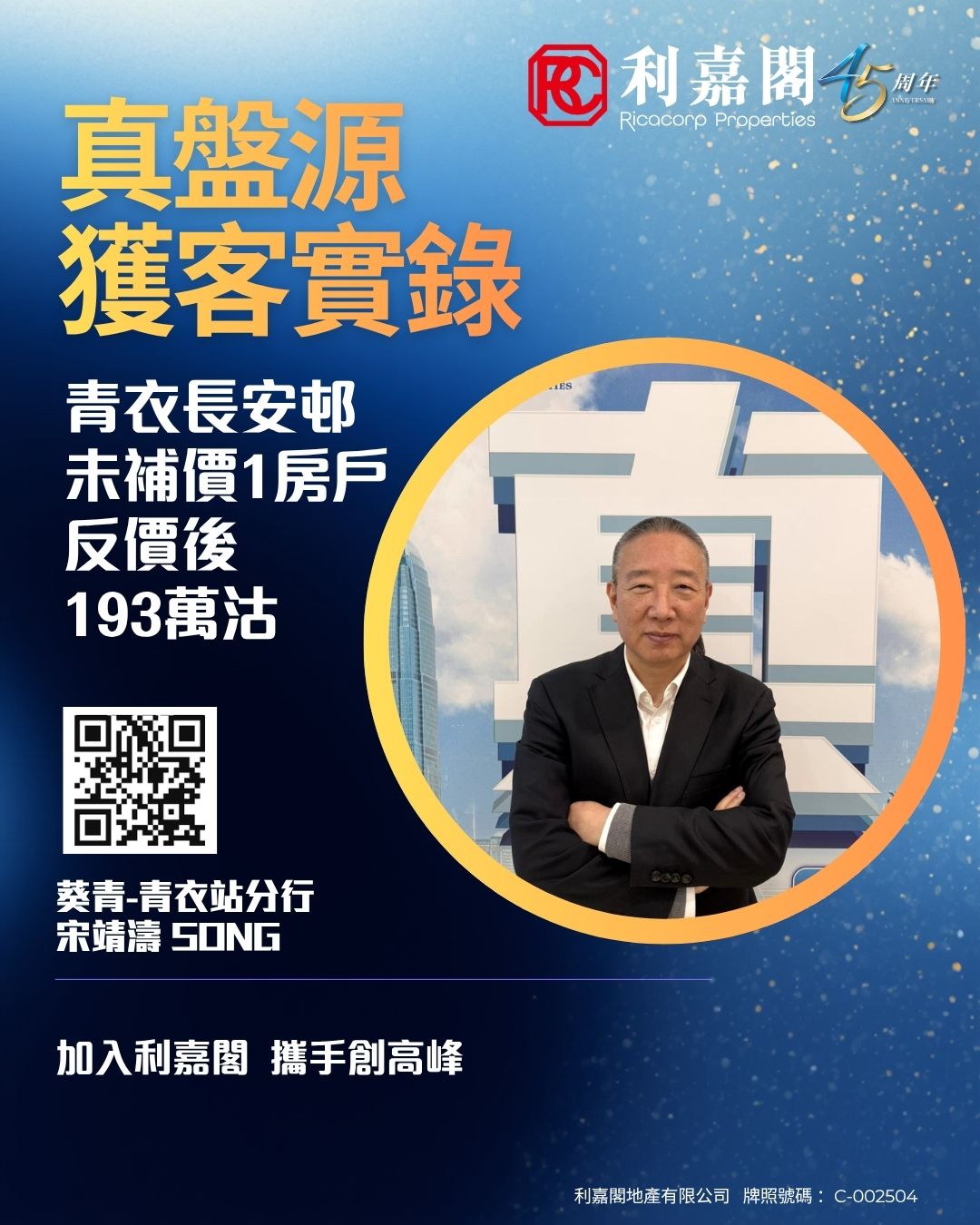 青衣灝景灣3房套戶1380萬成交 業主持貨近十年 物業升值45% 二手動向 2026-04-04 by Connie Li · Published 2026-04-04 · Last modified 2026-04-02