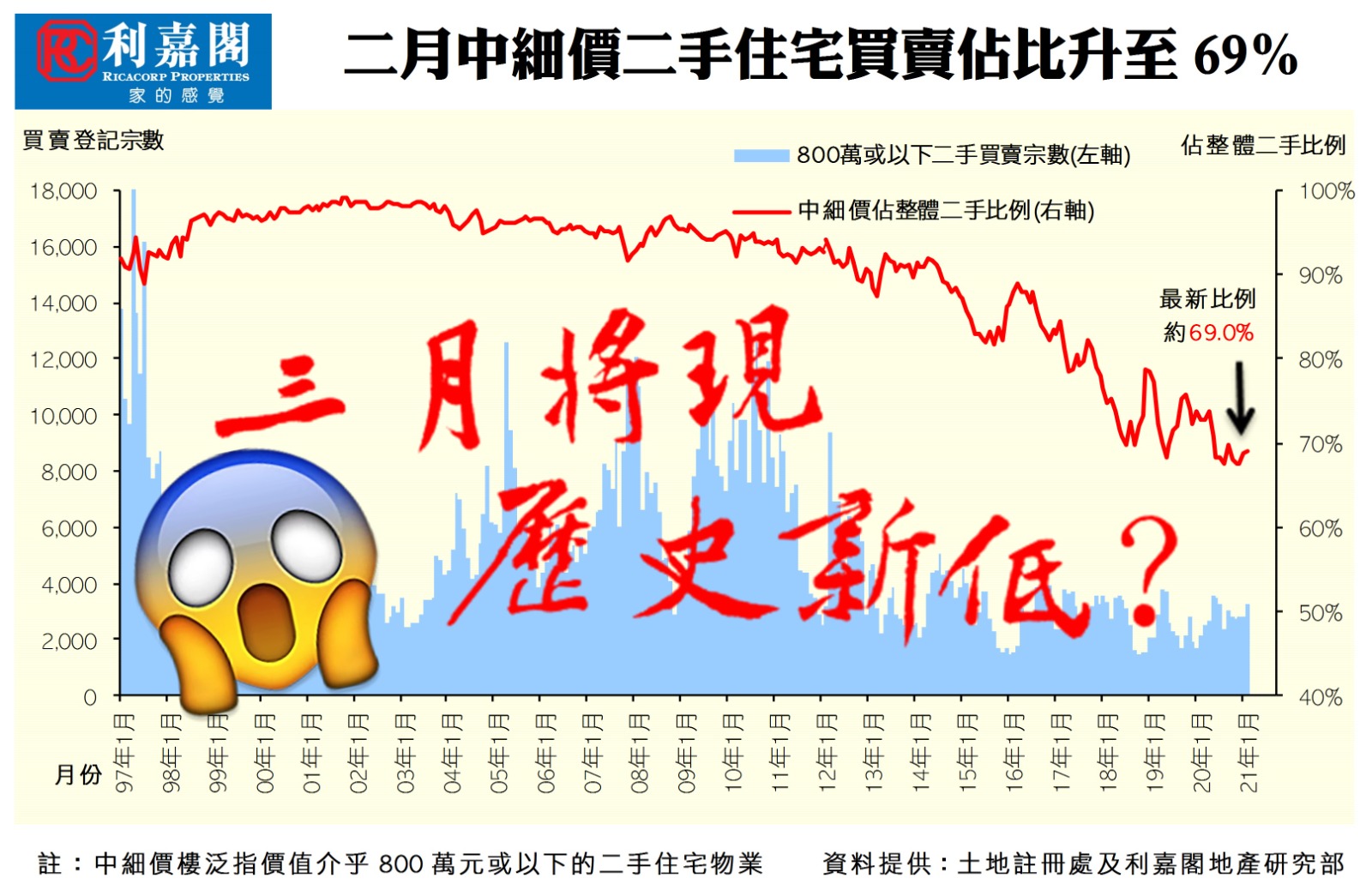 二月中細價樓買賣佔比升至69% 後勁不繼 換樓頻 豪宅旺 本月中高價佔比料創新高 研究報告 2021-03-25 by Chan Derek · Published 2021-03-25 · Last modified 2021-04-12