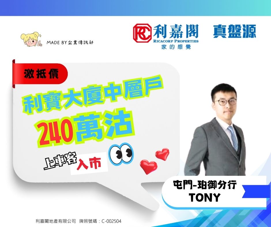 區內客鍾情屋苑配套完善 以240萬購屯門利寶大廈中層戶