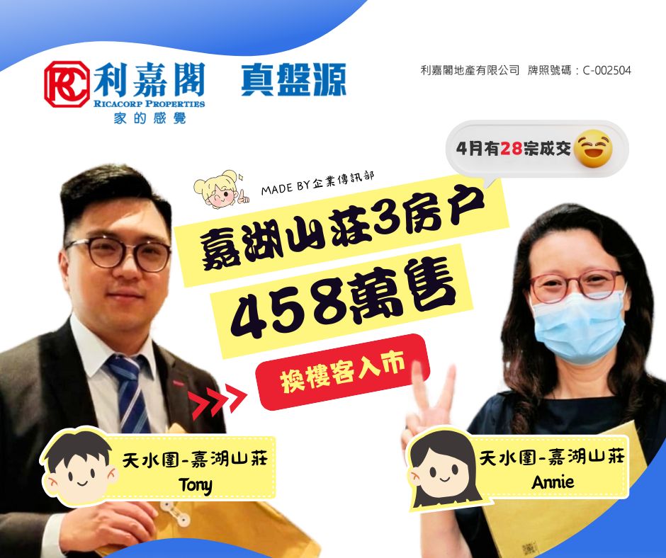天水圍嘉湖山莊4月錄約28宗二手成交 換樓客458萬購屋苑高層3房戶 二手動向 2025-05-03 by Connie Li · Published 2025-05-03 · Last modified 2025-05-02