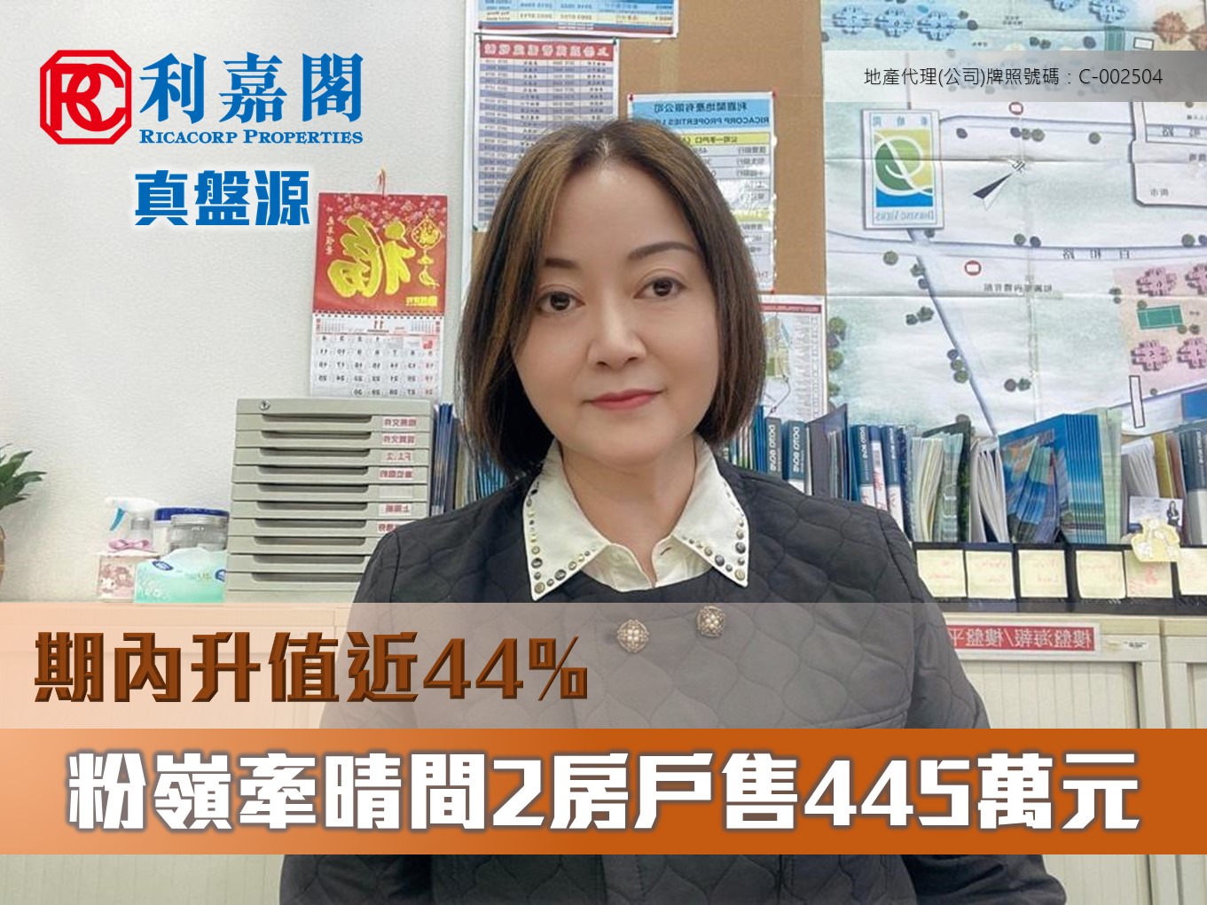 粉嶺牽晴間2房戶減至486萬沽出 業主2016年買入 帳賺近1球 二手動向 2023-09-13 by Ong KY · Published 2023-09-13 · Last modified 2023-10-13