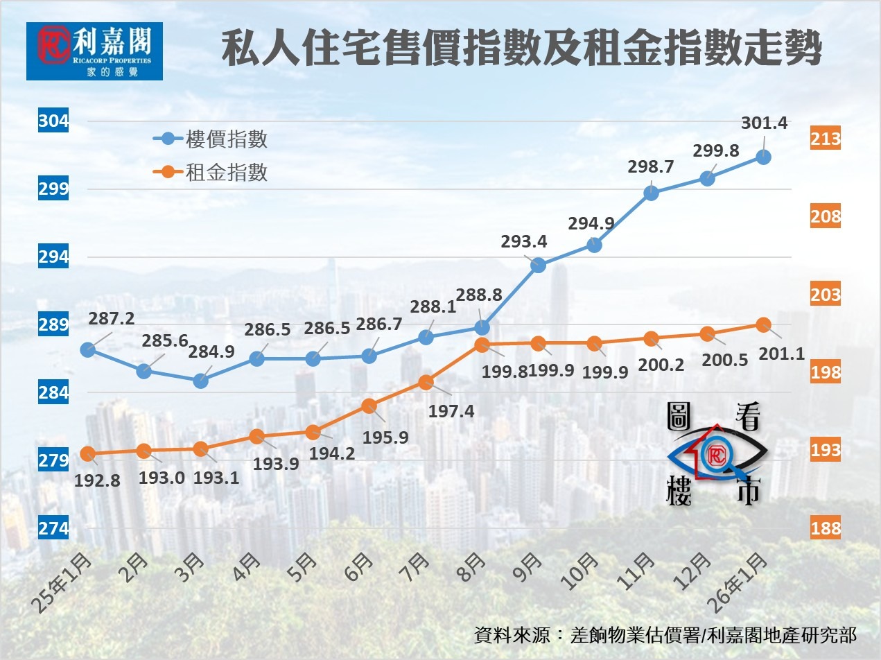 樓價終止3連跌 全年升3.25% 後市續俏 利嘉閣:2026年樓價租金齊看升 研究報告 2026-01-28 by Chan Derek · Published 2026-01-28 · Last modified 2026-02-02