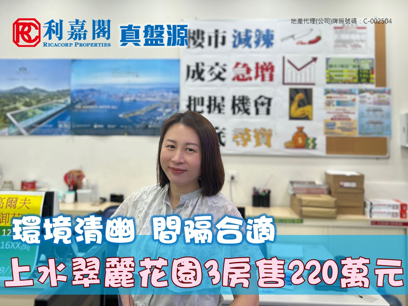 上水翠麗花園3房售313萬元 業主1989年買入 物業升值逾6倍 二手動向 2024-03-02 by Ray Cheng · Published 2024-03-02 · Last modified 2024-03-01