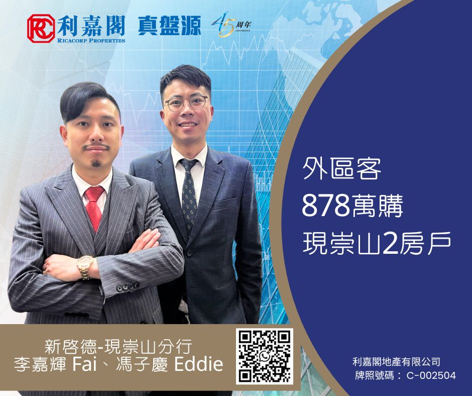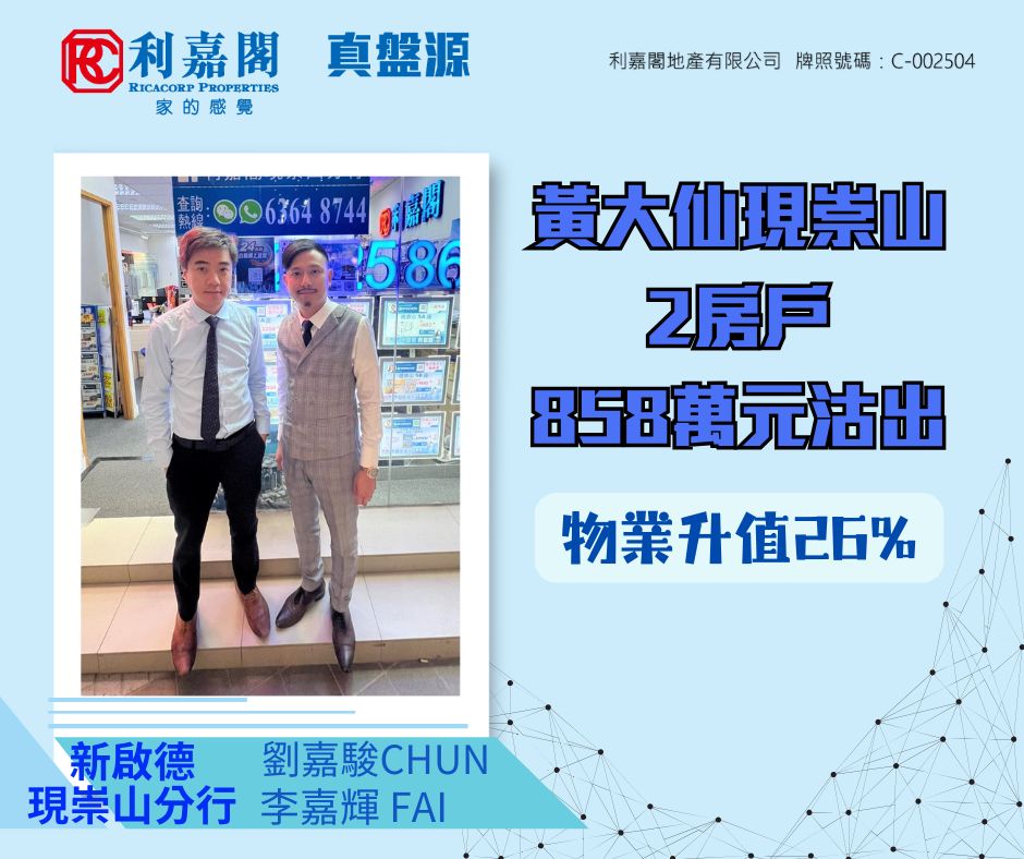 外區客878萬購黃大仙現崇山2房戶 業主2015年買入 現帳賺130萬元 九龍 2026-01-04 by Ong KY · Published 2026-01-04 · Last modified 2026-01-08