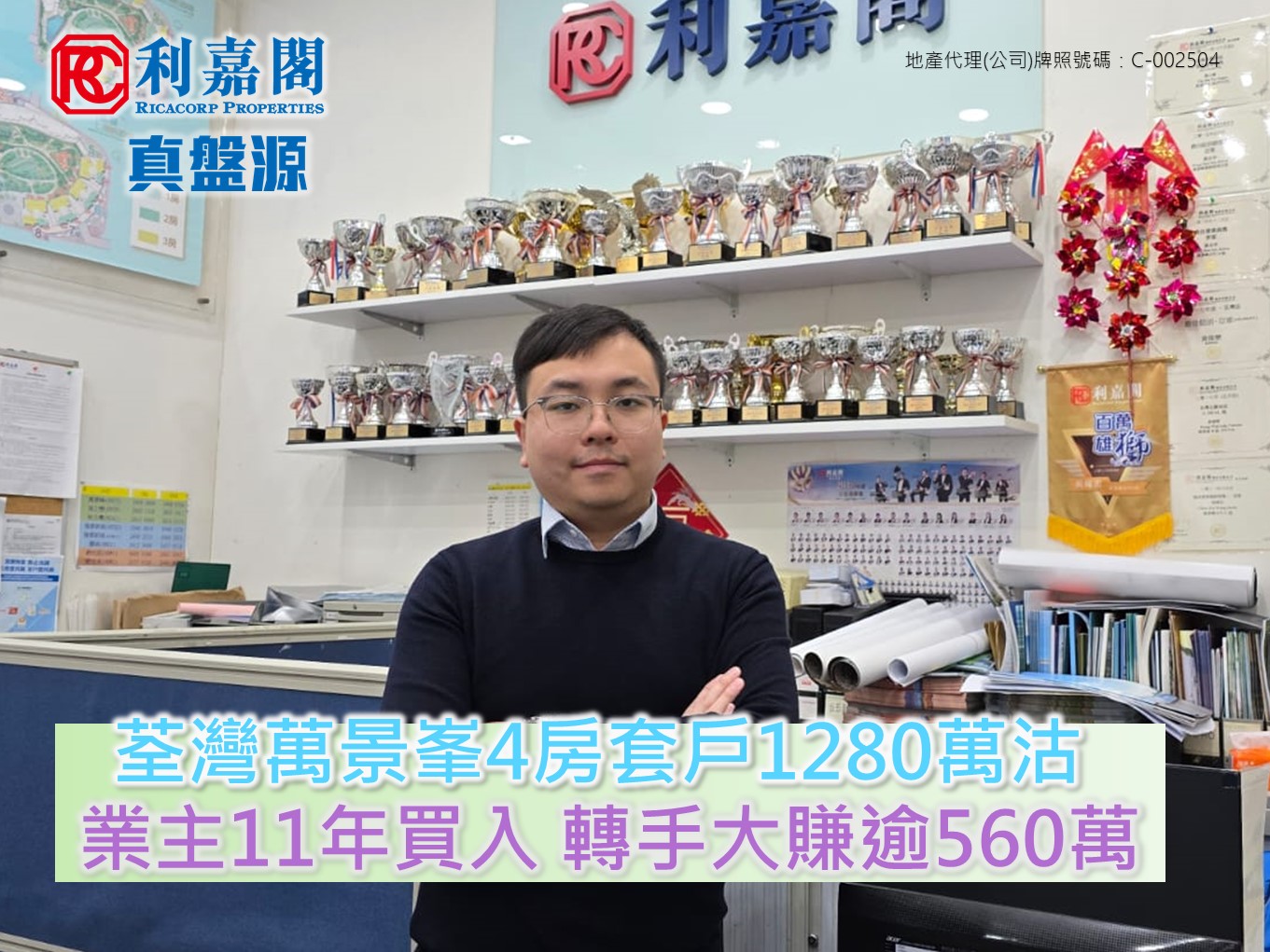 外區客1230萬購荃灣萬景峯獨家盤 業主2007年買入 現轉手帳賺7球 二手動向 2025-09-24 by Connie Li · Published 2025-09-24 · Last modified 2025-09-23