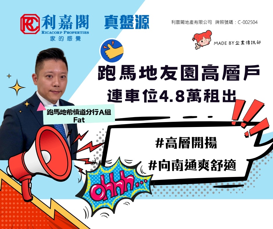 外區客4.8萬租跑馬地友園高層戶連車位 業主去年底購入 即享3.1厘回報 二手動向 2025-05-03 by Lam Polly · Published 2025-05-03 · Last modified 2025-05-02
