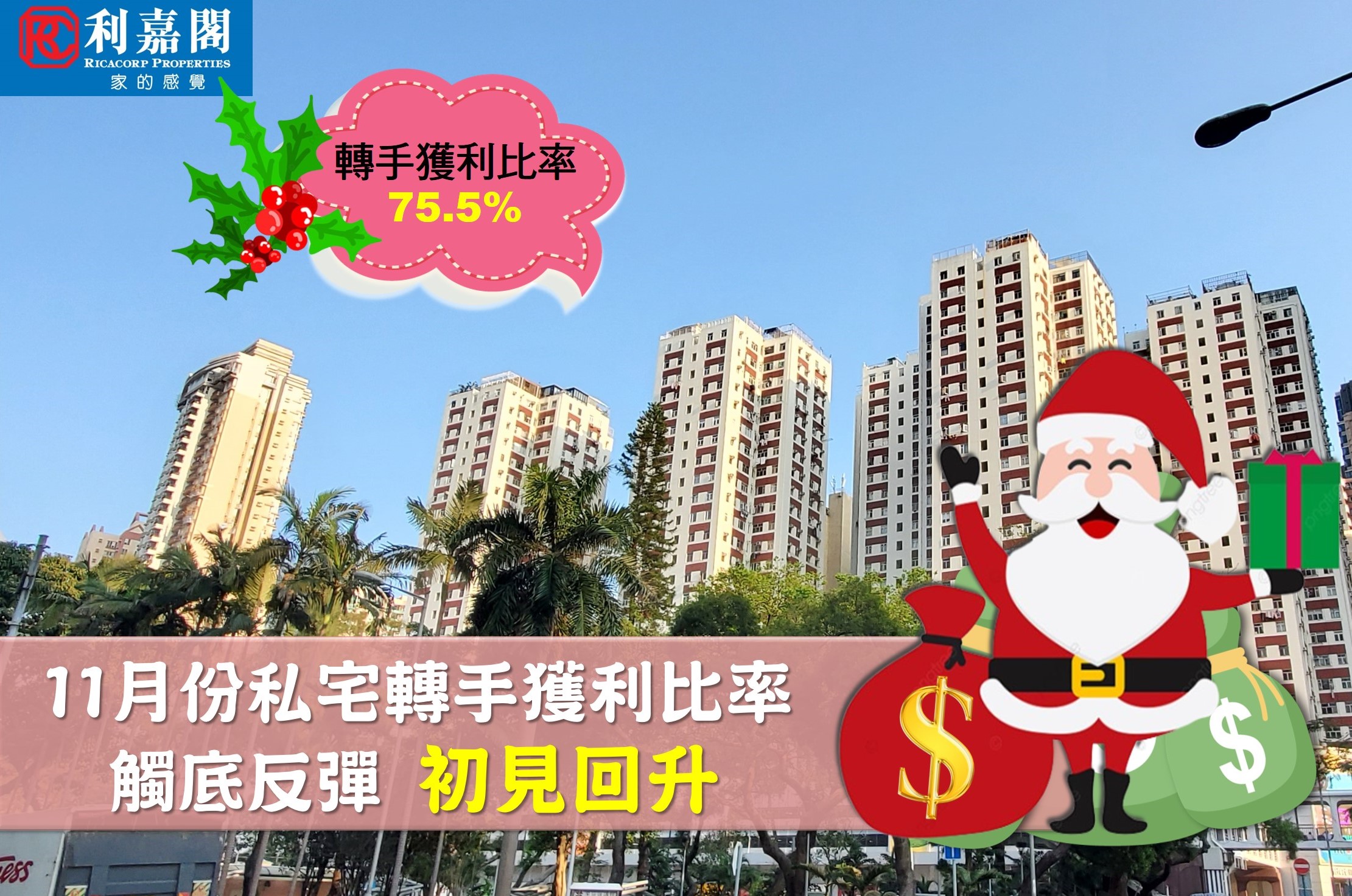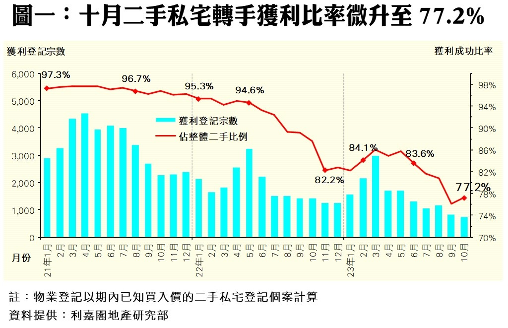 11月私宅轉手獲利率觸底回升至75.5% 平均每宗賺幅37.8% 近13年最少 研究報告 2023-12-26 by Chan Derek · Published 2023-12-26 · Last modified 2023-12-25
