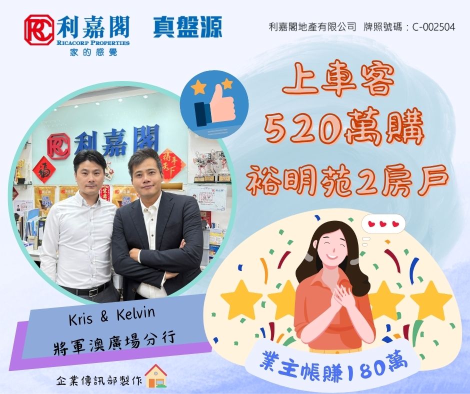 上車客520萬購將軍澳裕明苑2房戶 業主2012年買入 物業升值53% 九龍 2025-10-07 by Ong KY · Published 2025-10-07 · Last modified 2025-10-06