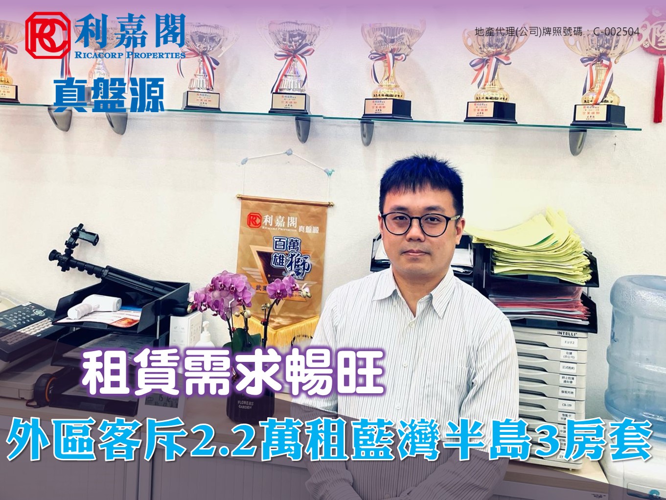 市場需求殷切 大單位租盤缺 外區客斥28800元租藍灣半島3房套 二手動向 2024-03-29 by Lam Polly · Published 2024-03-29 · Last modified 2024-03-27