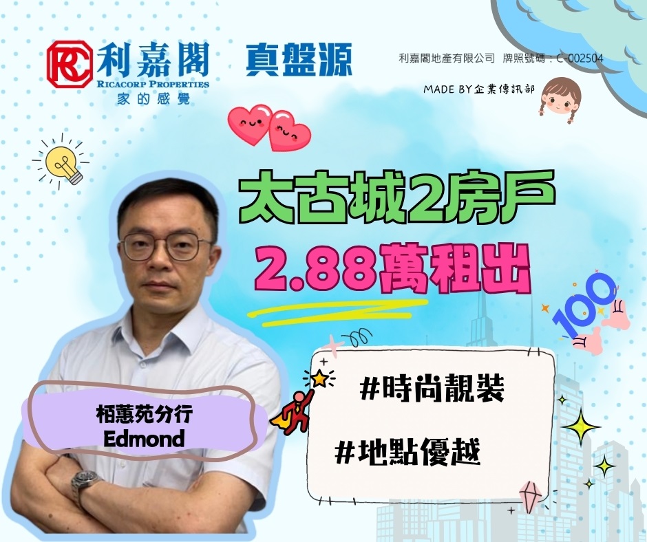金融專才鍾情單位附帶時尚靚裝 斥2.88萬租太古城高層2房戶 二手動向 2025-08-02 by Lam Polly · Published 2025-08-02 · Last modified 2025-08-01