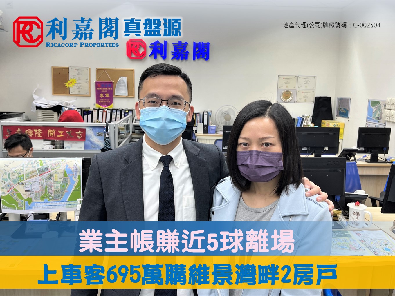 準新人756萬買維景灣畔兩房 呎價15,030元 一手業主19年帳賺逾2.3倍離場 二手動向 2022-12-16 by Ray Cheng · Published 2022-12-16 · Last modified 2022-12-19