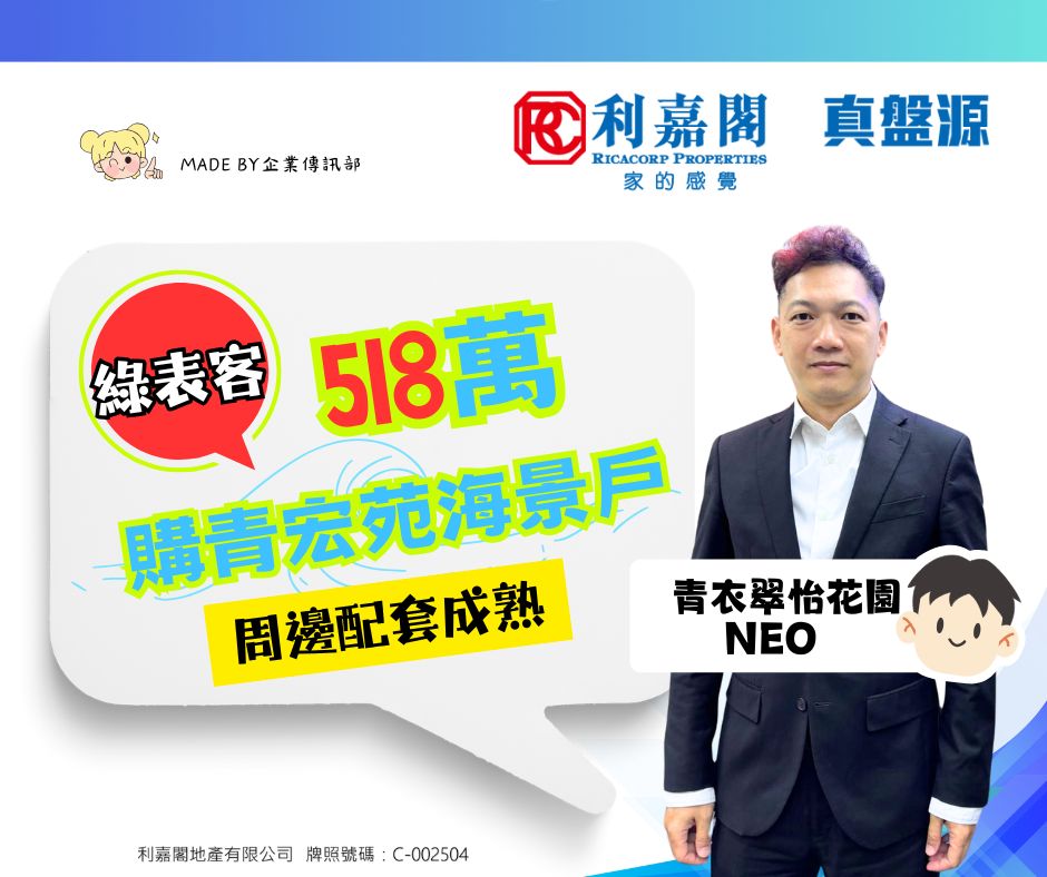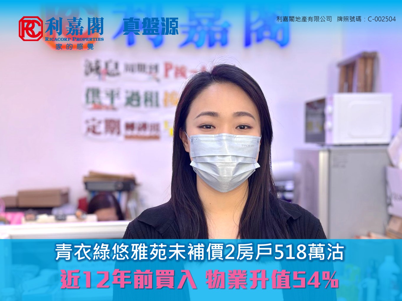青衣綠悠雅苑未補價2房戶518萬沽 業主近12年前買入 物業升值54% 二手動向 2025-03-22 by Connie Li · Published 2025-03-22 · Last modified 2025-03-21