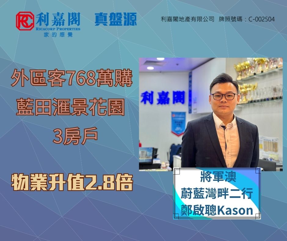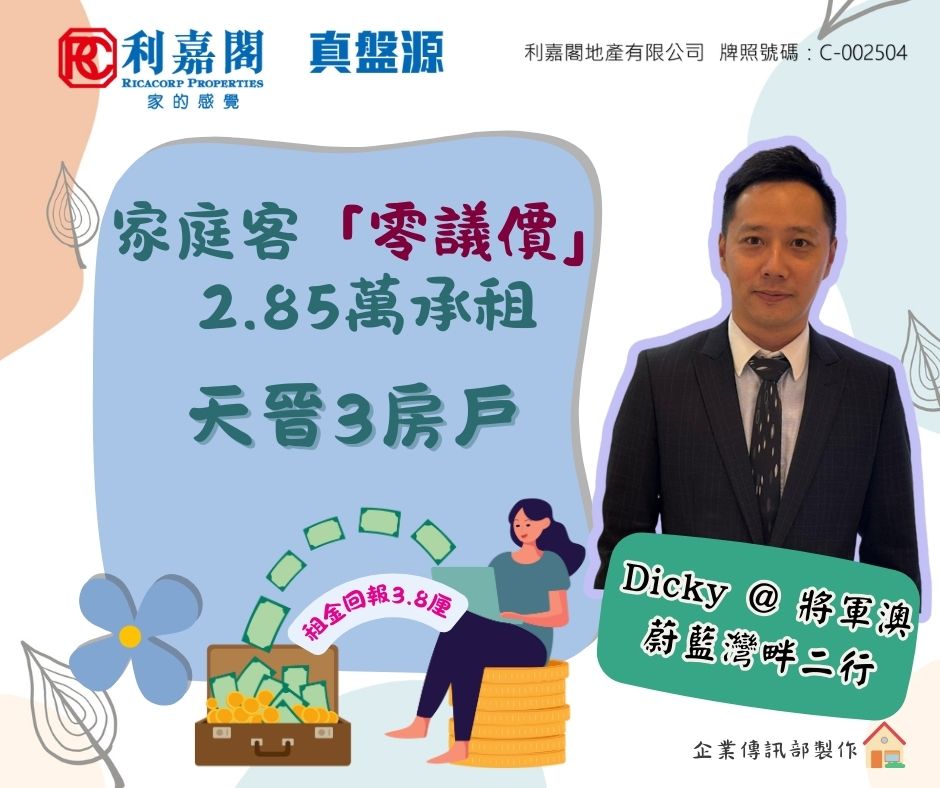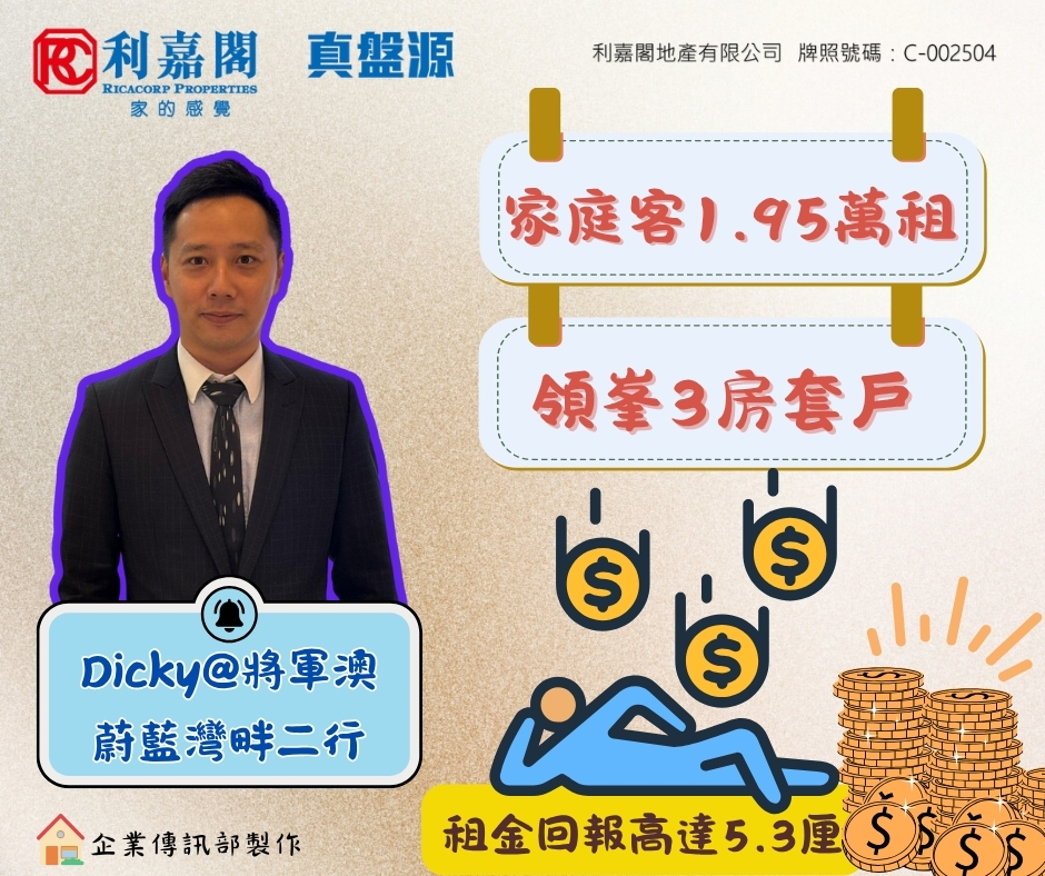 外區客1.95萬租日出康城領峯3房套戶 業主2009年買入 享租金回報高逾5厘 九龍 2025-10-19 by Ong KY · Published 2025-10-19 · Last modified 2025-10-17