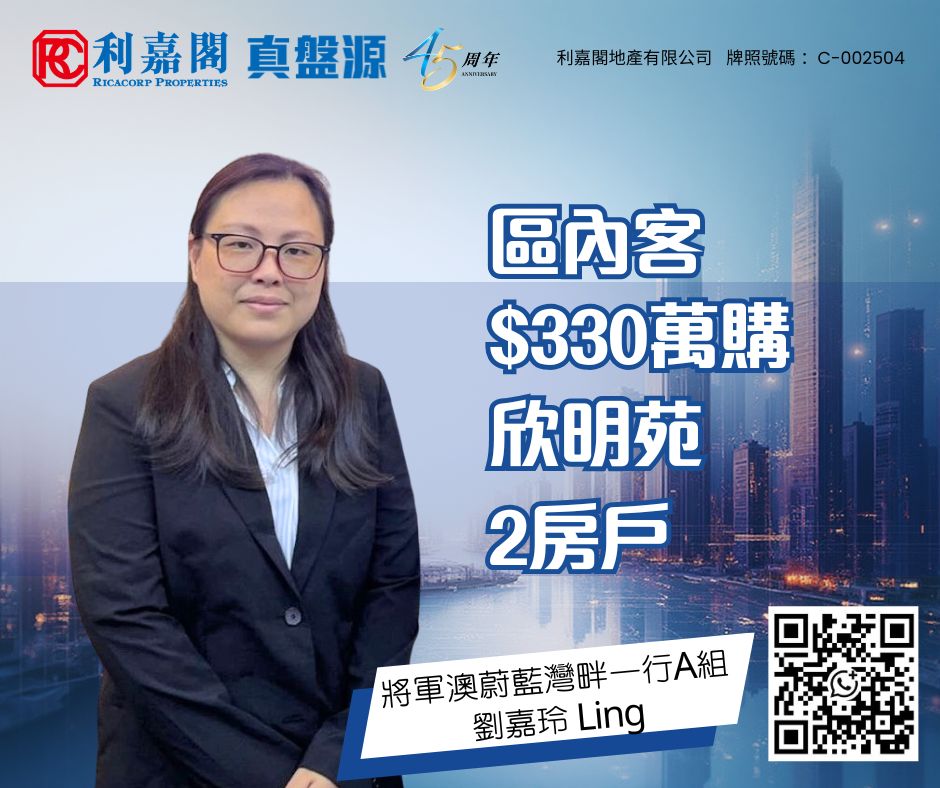 白居二客330萬購將軍澳欣明苑2房戶 長情業主90年代買入 現帳賺逾3球 九龍 2026-02-22 by Ong KY · Published 2026-02-22 · Last modified 2026-02-20