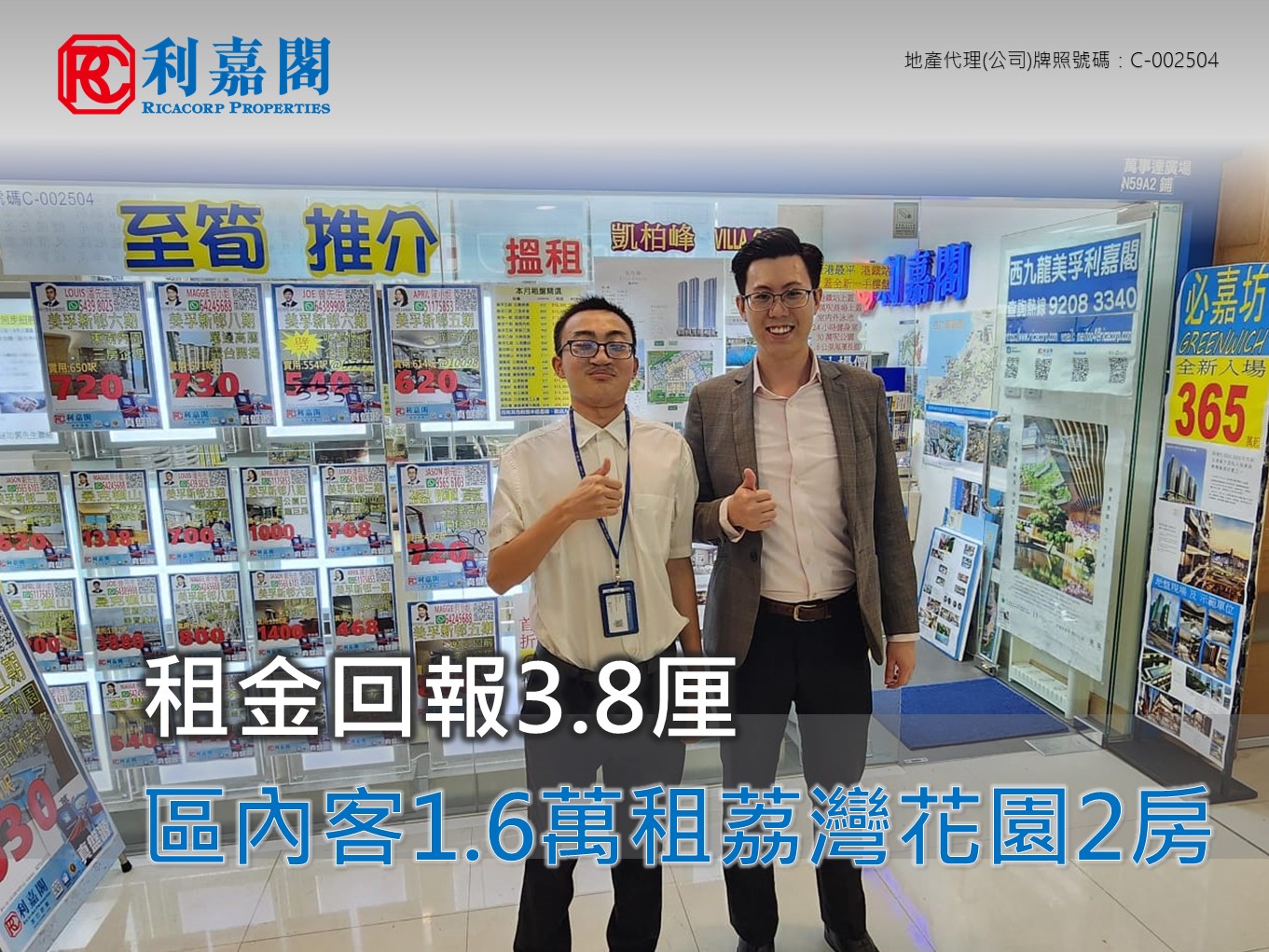 區內客16000元承租荔灣花園2房 業主2016年買入 租金回報3.8厘 二手動向 2023-10-09 by Ong KY · Published 2023-10-09 · Last modified 2023-10-16