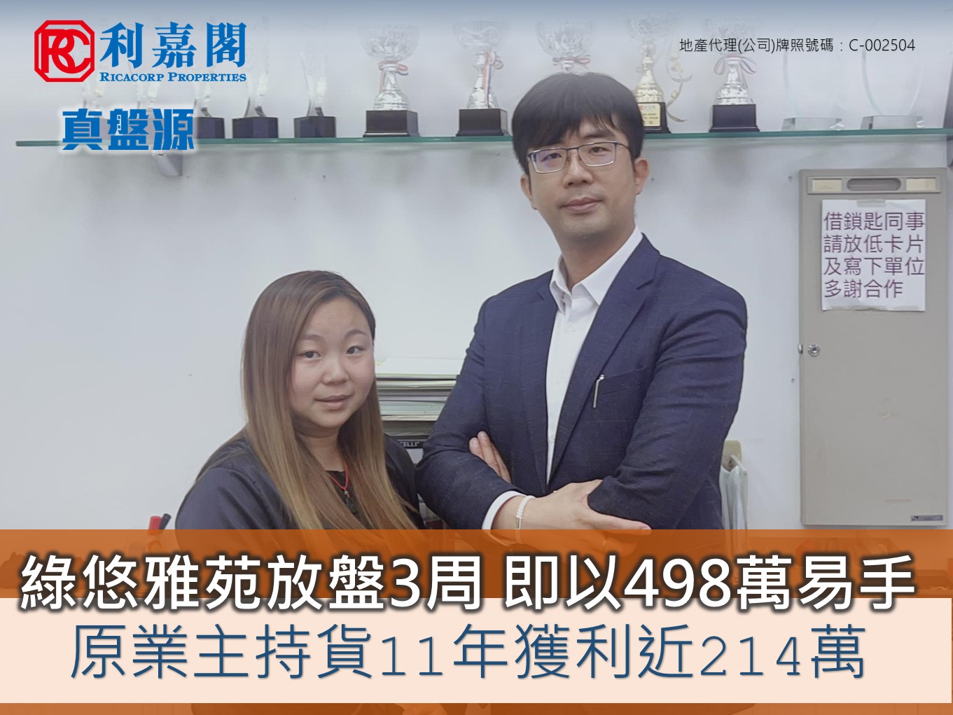 綠悠雅苑1房戶放盤3周 即以498萬易手 原業主持貨11年獲利近214萬 二手動向 2024-06-06 by Connie Li · Published 2024-06-06 · Last modified 2024-06-25